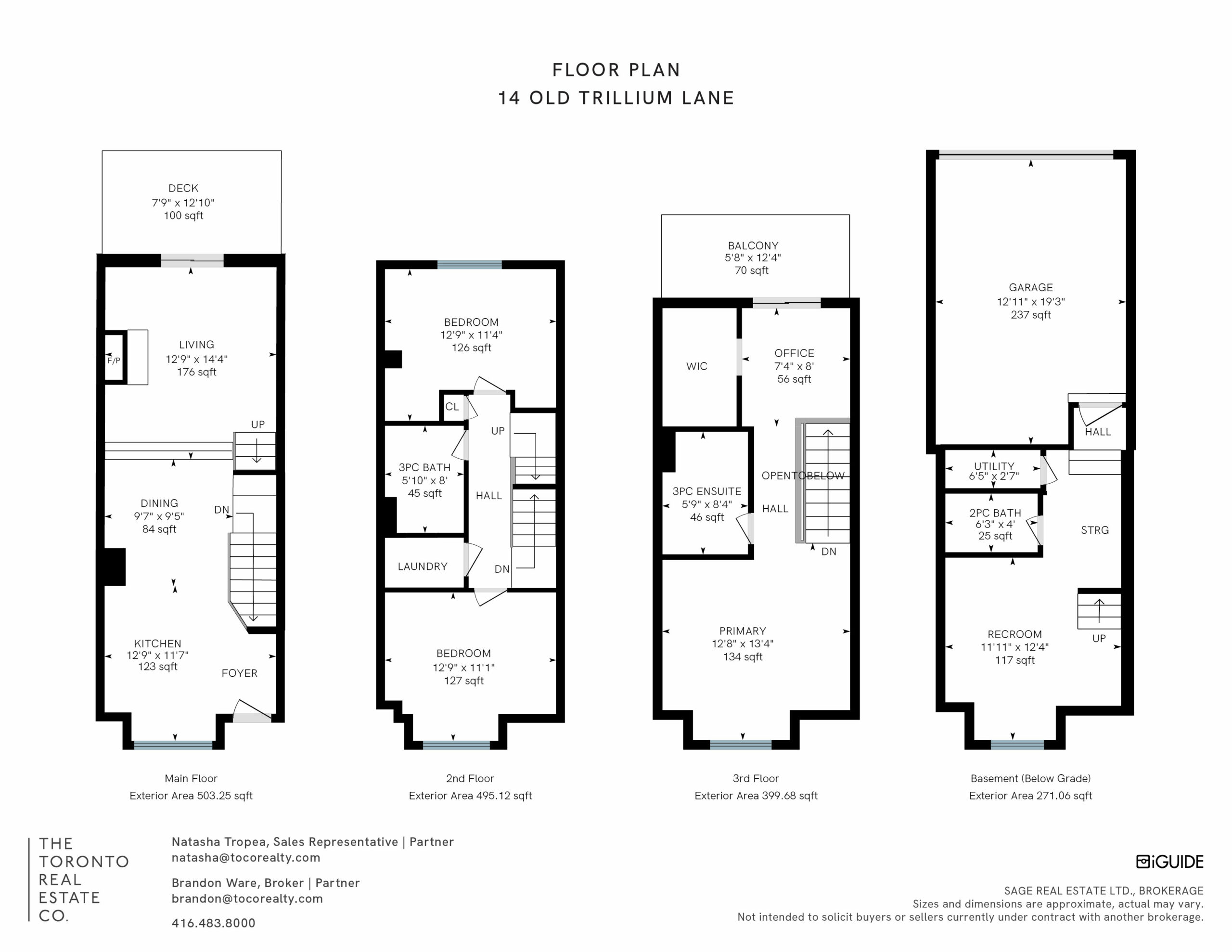 The second floor features a 2 bedroom split layout for excellent privacy, with a fully renovated 3-piece bathroom and laundry in between. The entire third floor is dedicated to the primary suite, featuring an updated 4-piece ensuite, walk-in closet, office area, and walkout to a private balcony. The basement provides a flexible space to suit your needs, complete with a 2-piece bath and direct garage access.